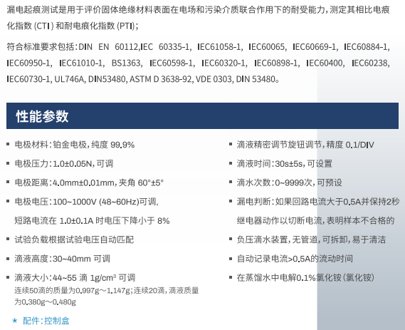 數(shù) (CTI) 和耐電痕化指數(shù) (PTI)。另外設(shè)備結(jié)構(gòu)允許通過微調(diào)測試電壓、電流