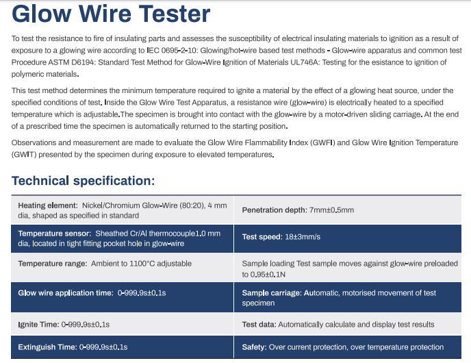 Hot Wire Ignition test is a type of resistance test to fire for plastic